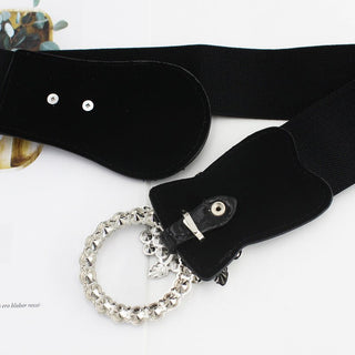 Retro Black Elastic Belt with Decorative Ring Buckle for Female