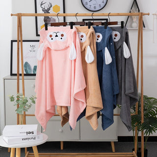 Soft and Wearable Hooded Cape Thickened Bath Towel for Children