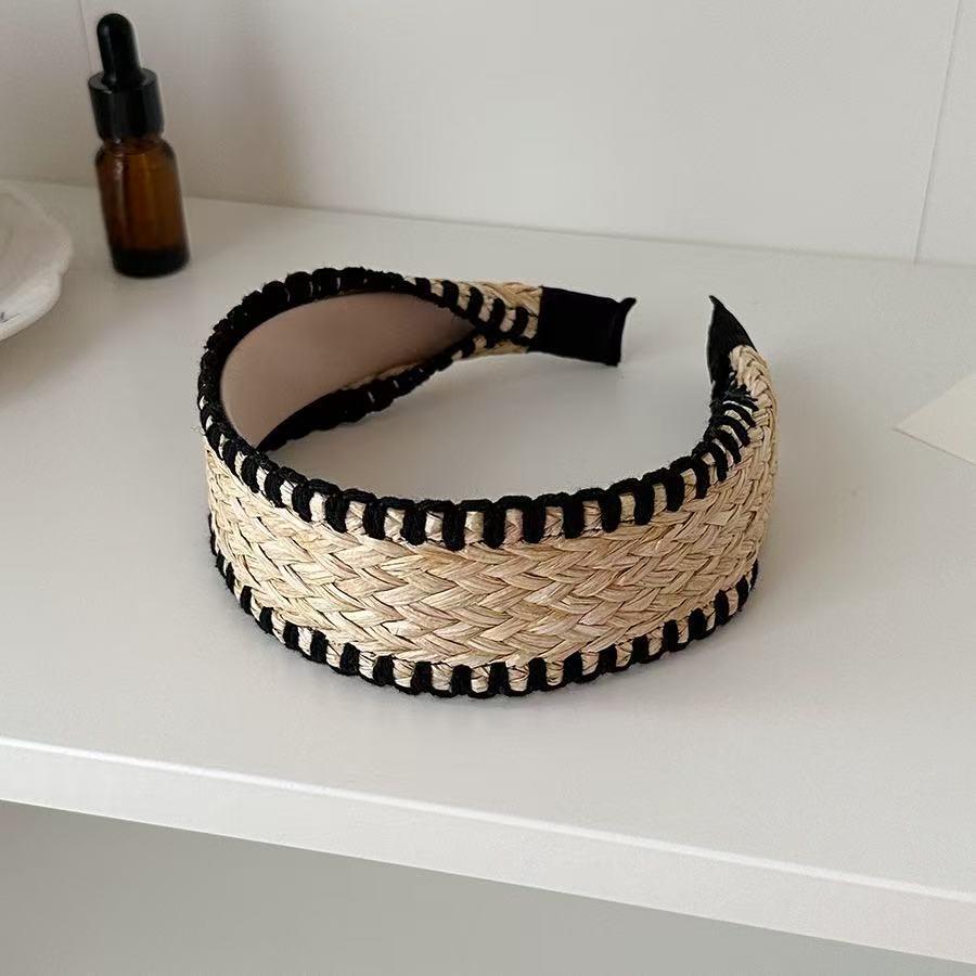 Handmade French Style Woven Wide Headband Leisure Hair Accessory - Coffee