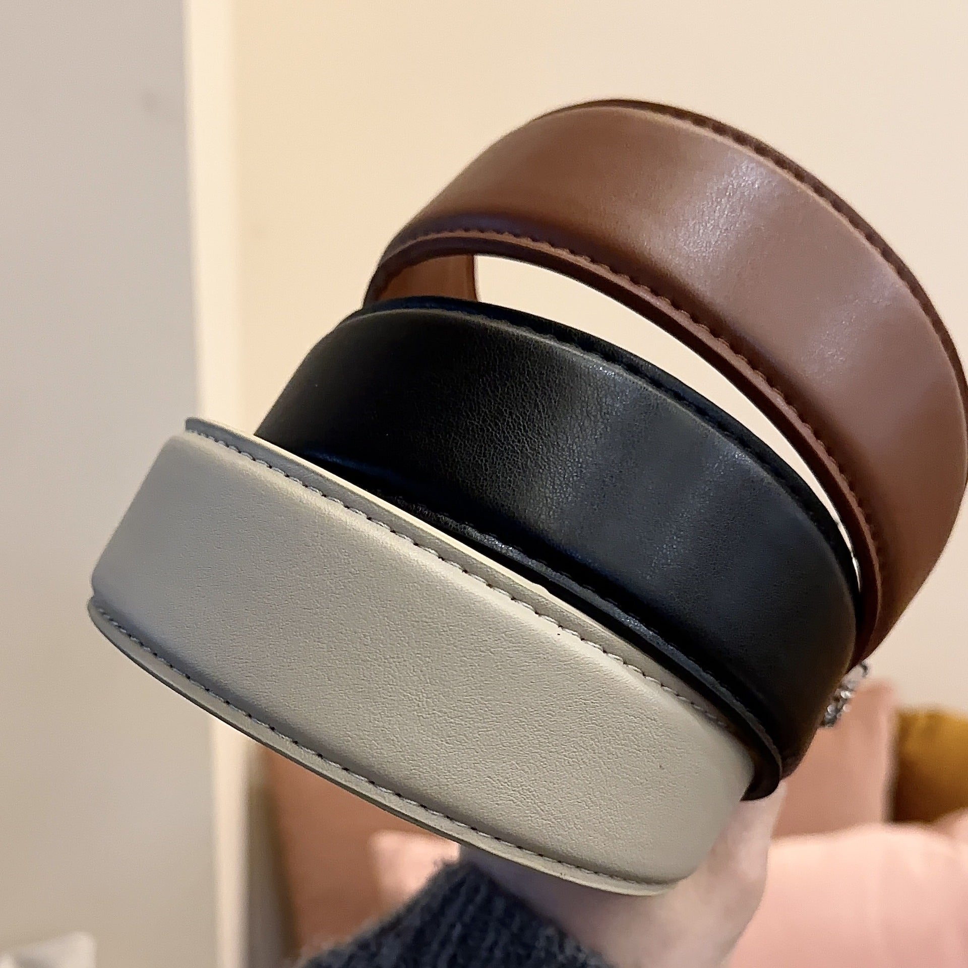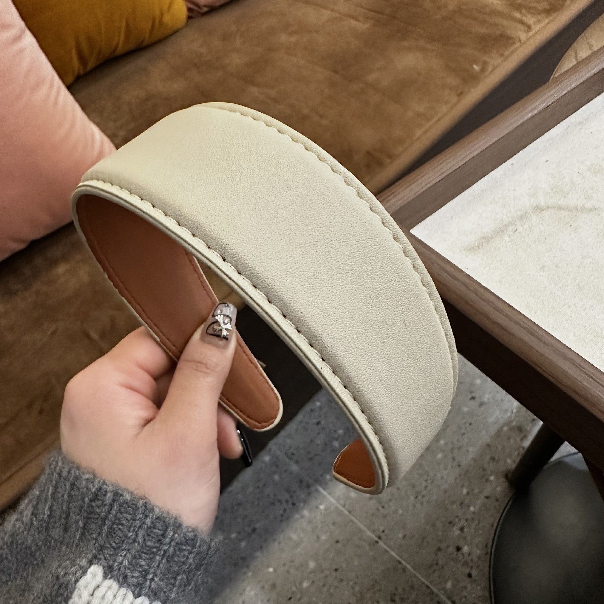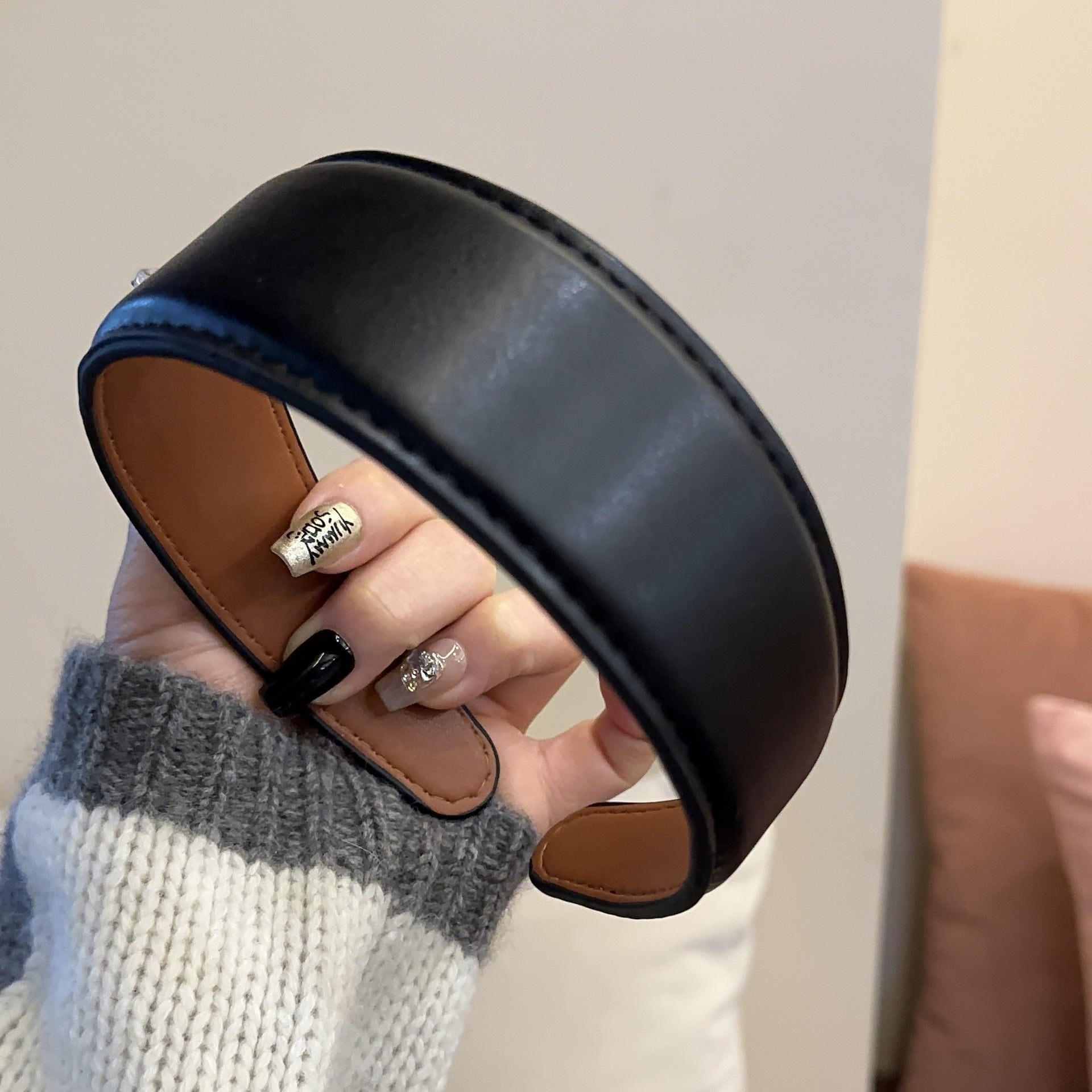 Wide Retro Leather Headband for Women Fashionable Versatile Hair Accessory Coffee
