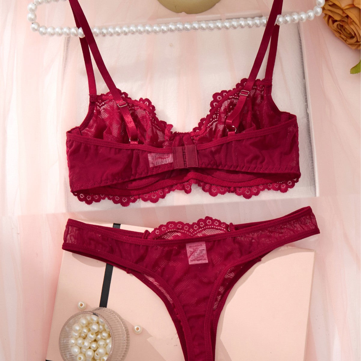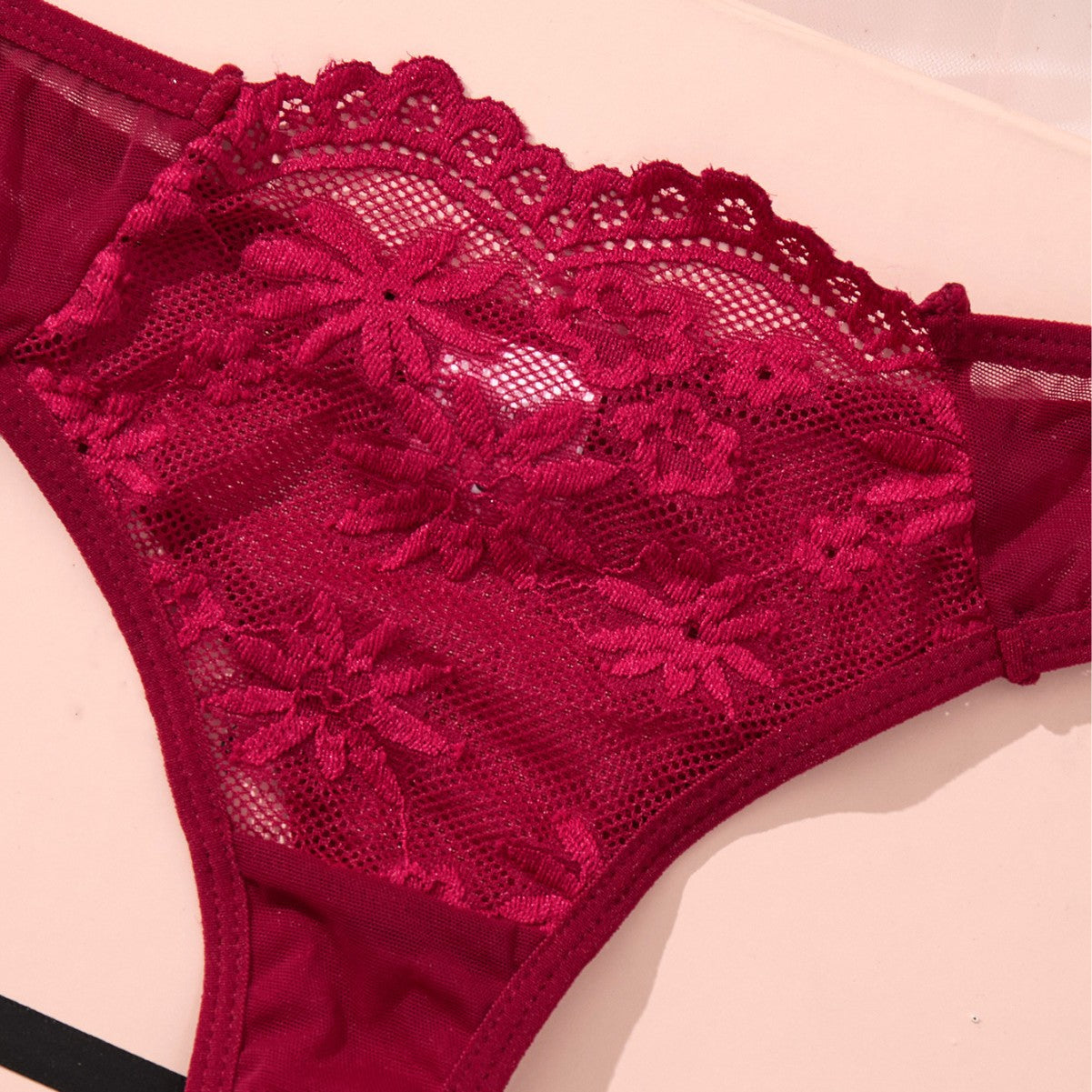 Sexy Burgundy Lace Deep V Bra and Panty Set