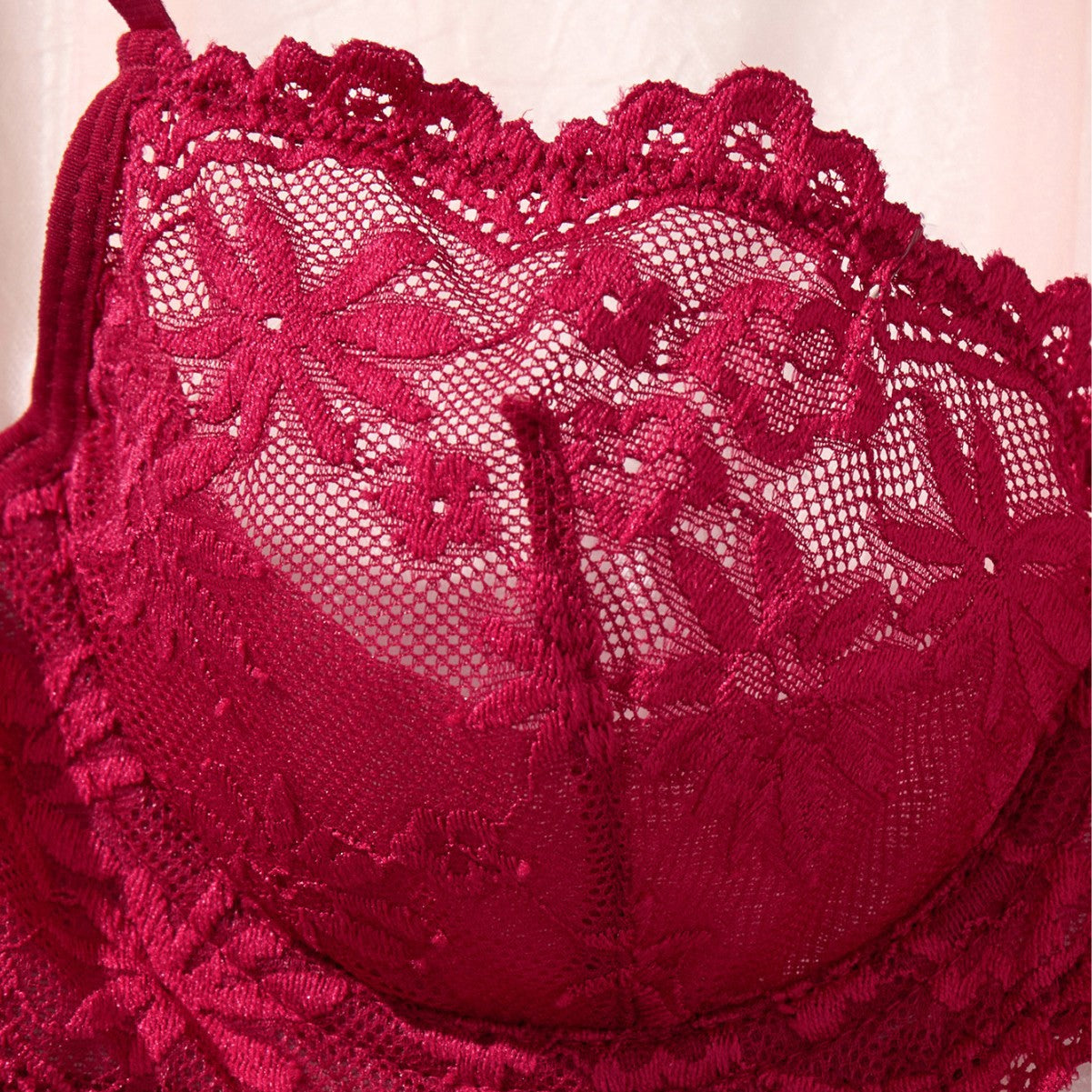 This elegant burgundy lace lingerie set features a flattering deep V-neckline and breathable polyester fabric to provide sophisticated comfort and a stunning silhouette.