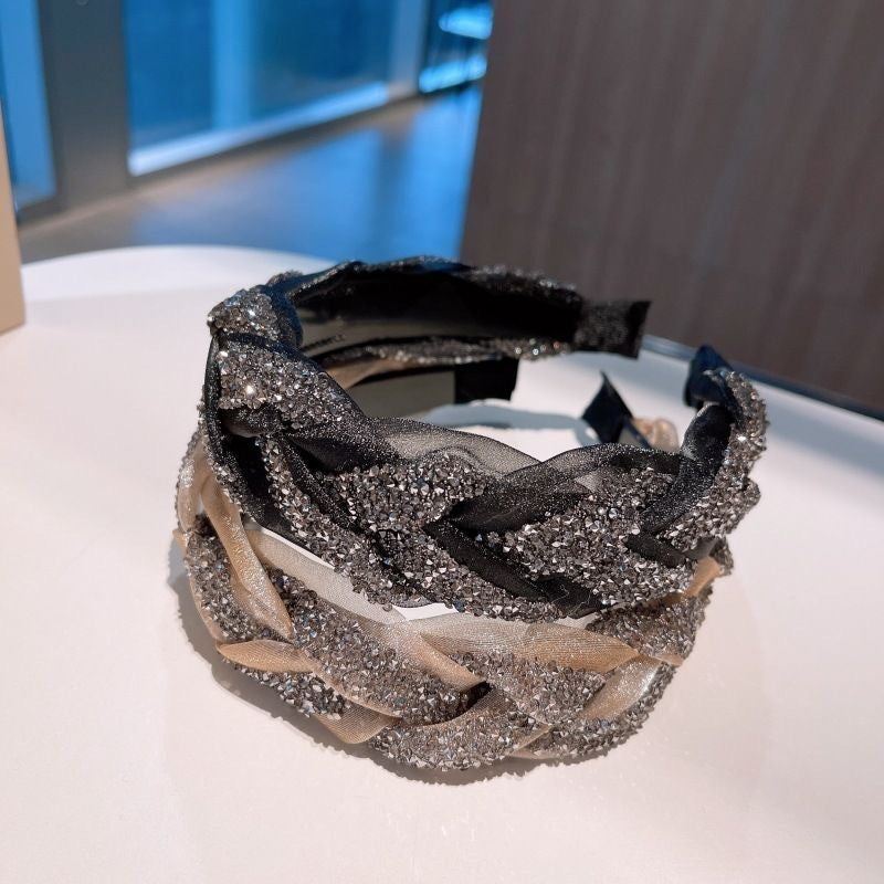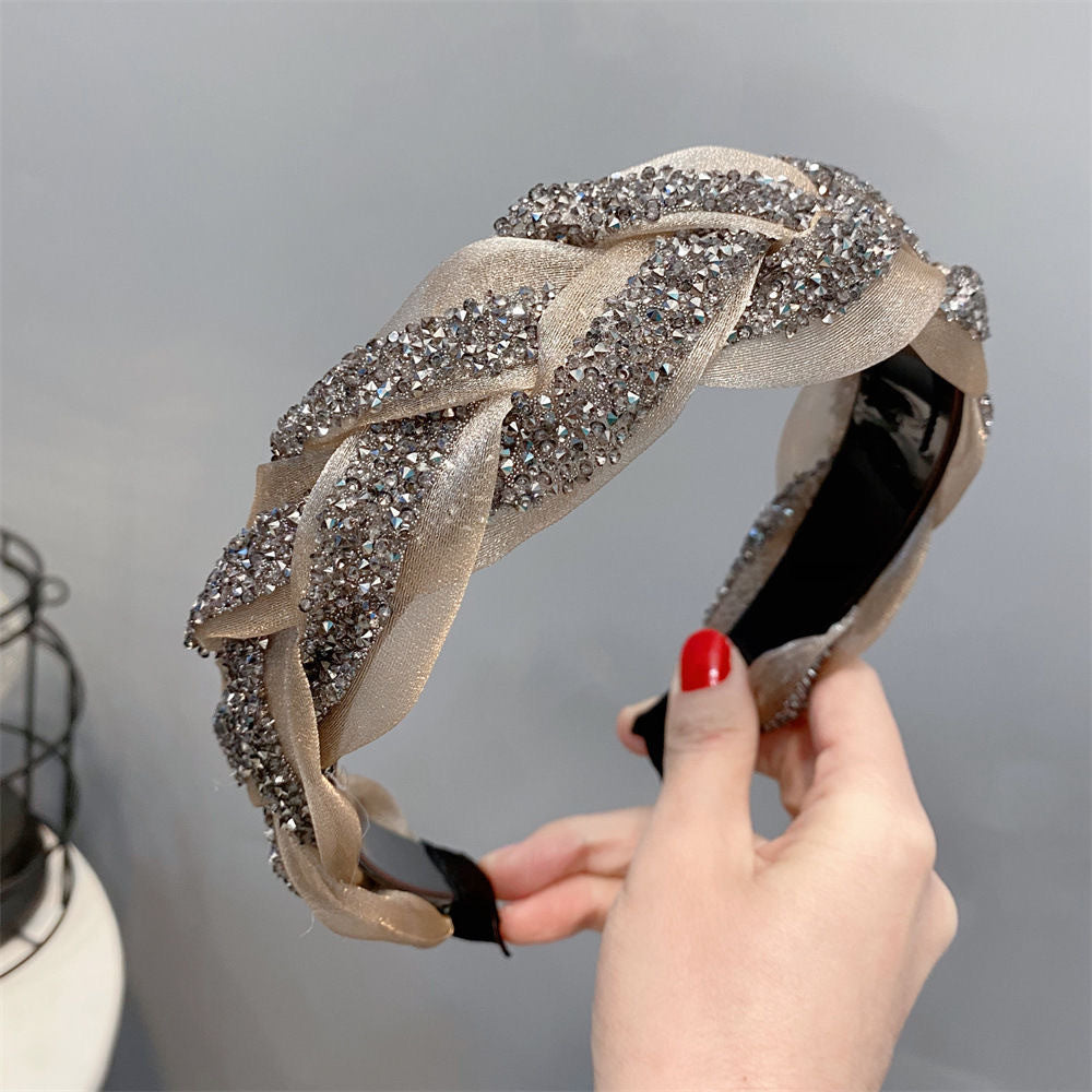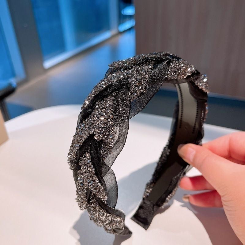 Retro Organza Rhinestone Luxury Headband Handmade Hair Accessory for Women