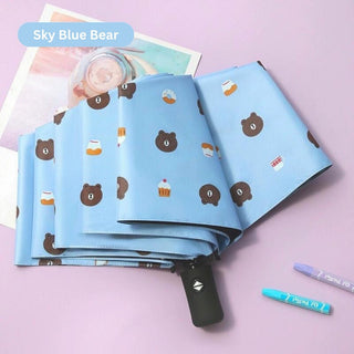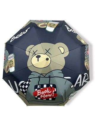Bear Cartoon-Printed Automatic Folding Umbrella for All Season
