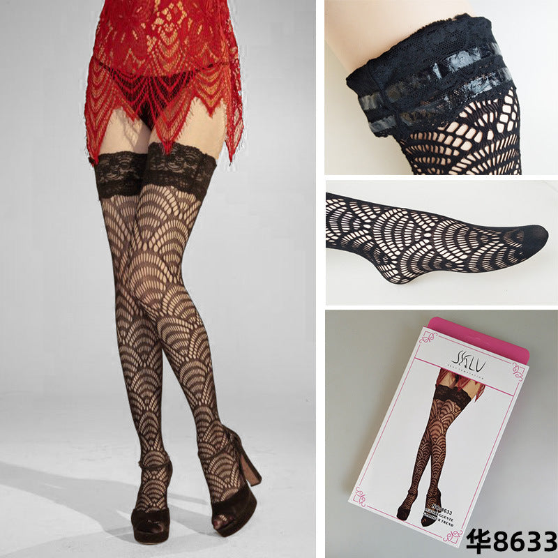 European and American Style Sexy Long Jacquard Socks Fishnet High Mesh Stockings