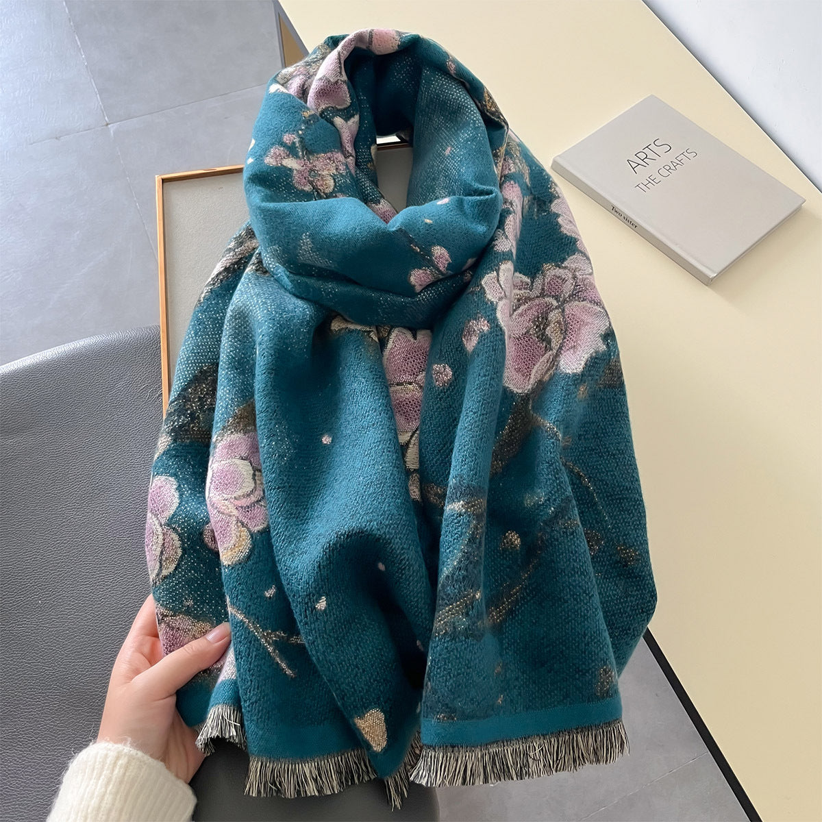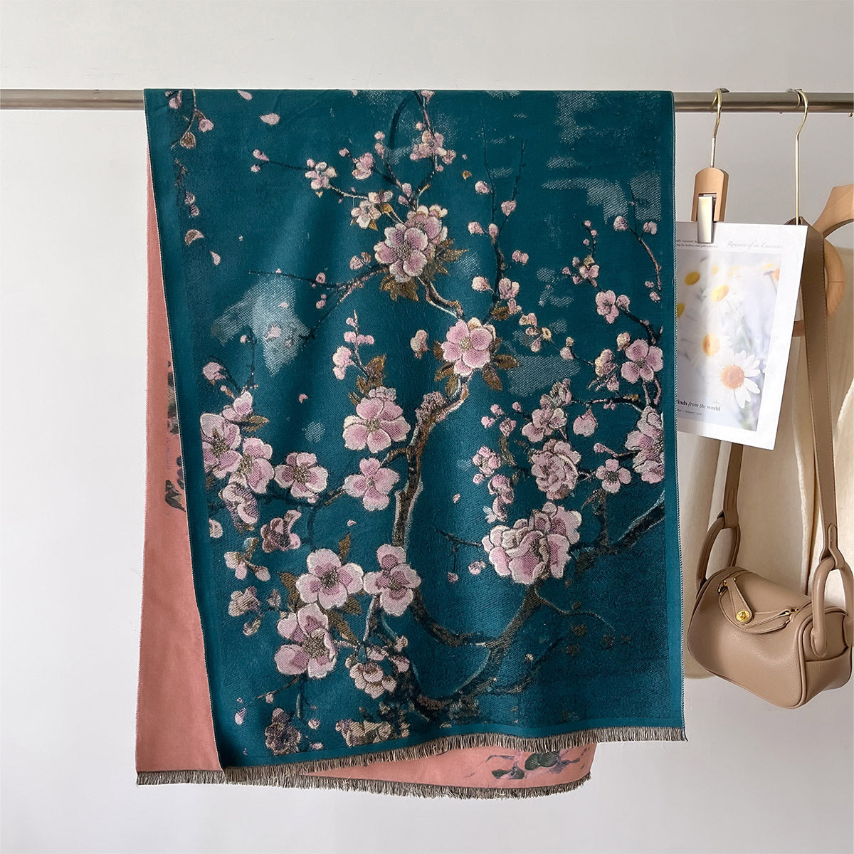 Double-Sided Chinese Style Floral Printed Luxury Shawl for Women