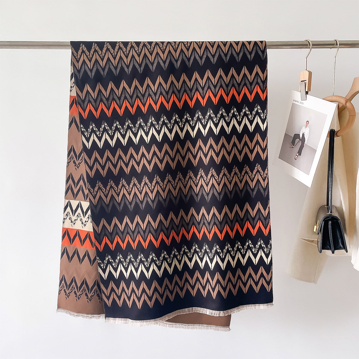 Elegant Double-Sided Linear Pattern Printed Winter Shawl