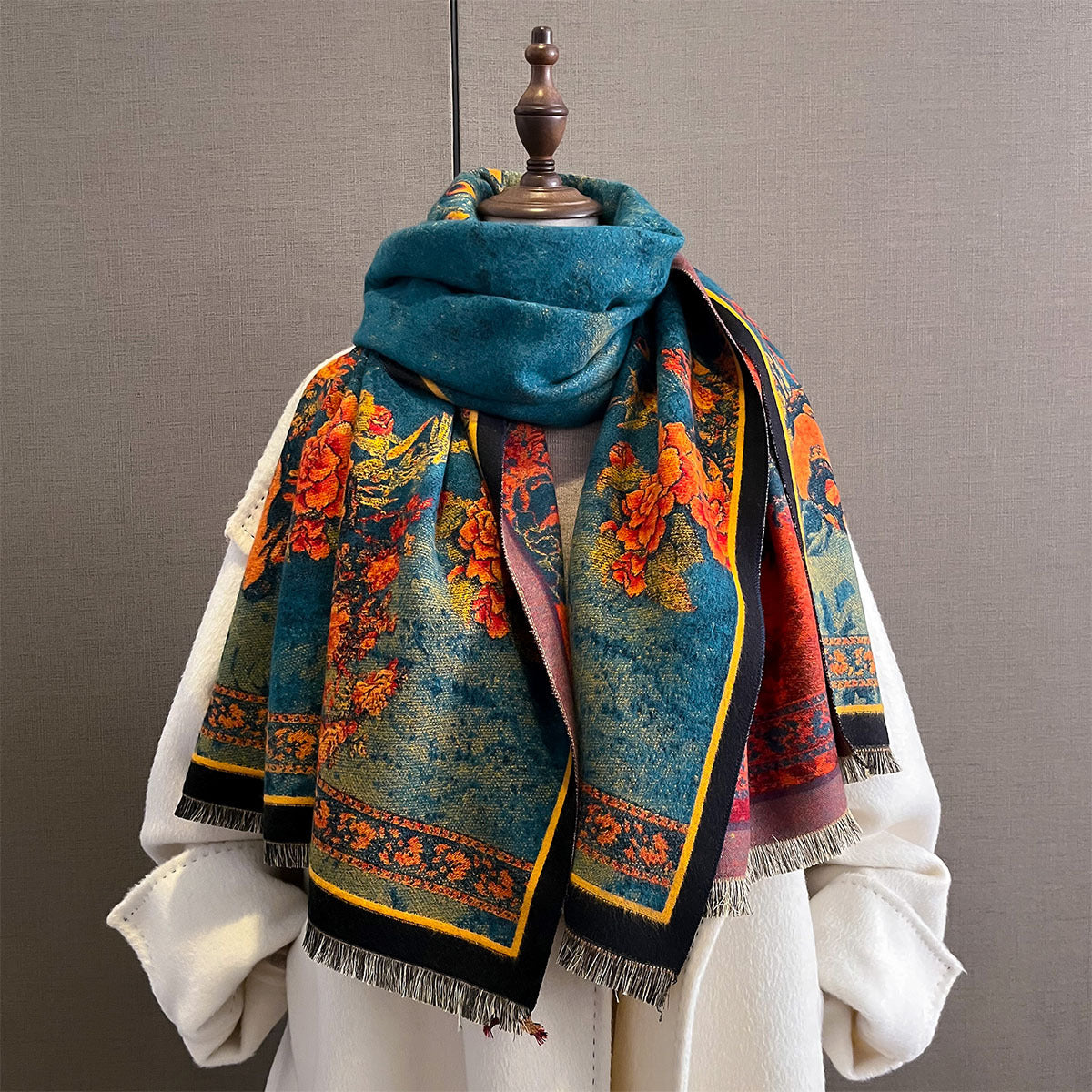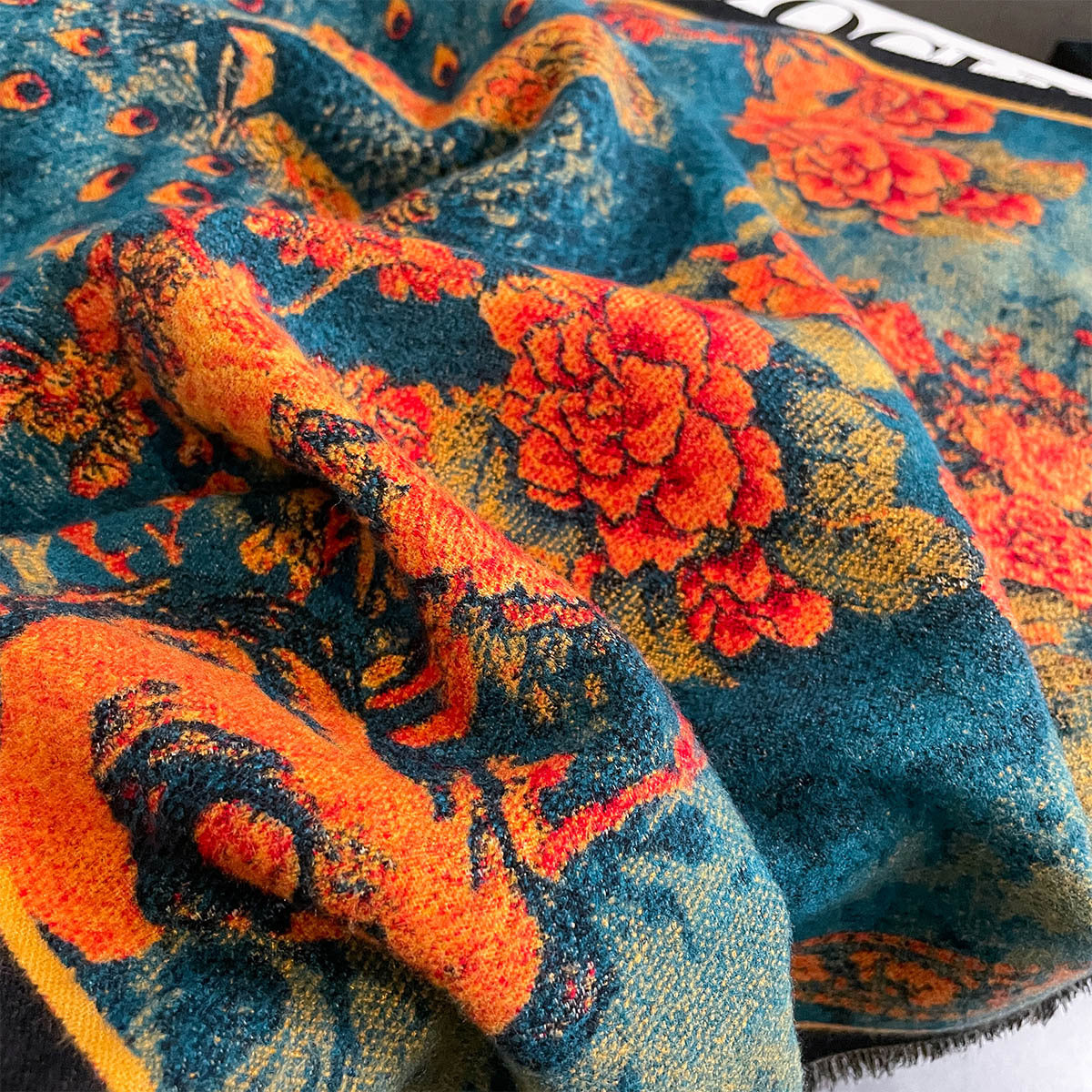 Luxurious Floral Peacock Oil Painting Winter Shawl for Women