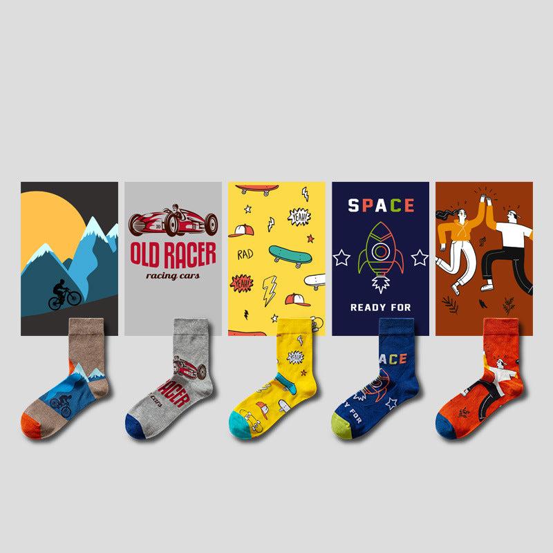 5 Pair set cartoon color trend Autumn and spring socks for men & women