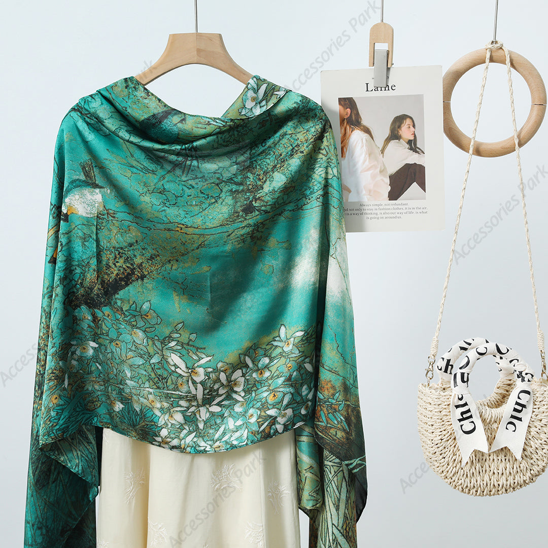 Gorgeous Wild Nature Floral Printed Women Satin Silk Scarf