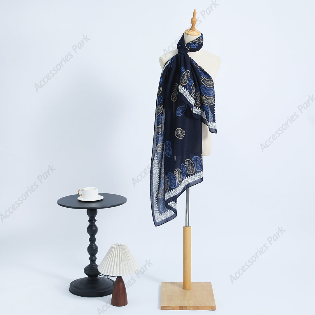Multicolor Paisley Pattern Printed Women Cotton Linen Scarf