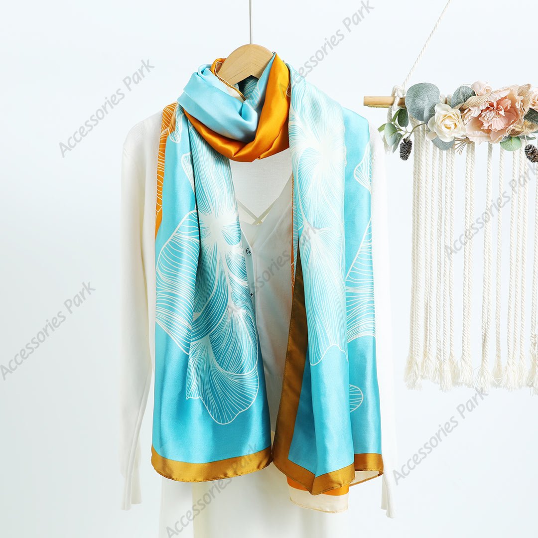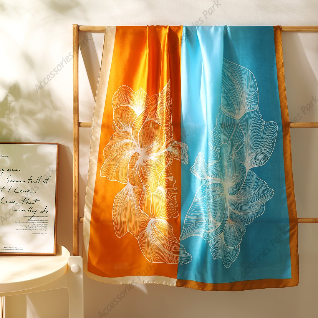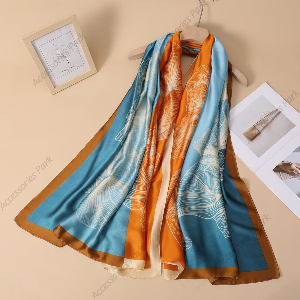 Summer Friendly Big Floral Printed Multicolor Satin Scarf
