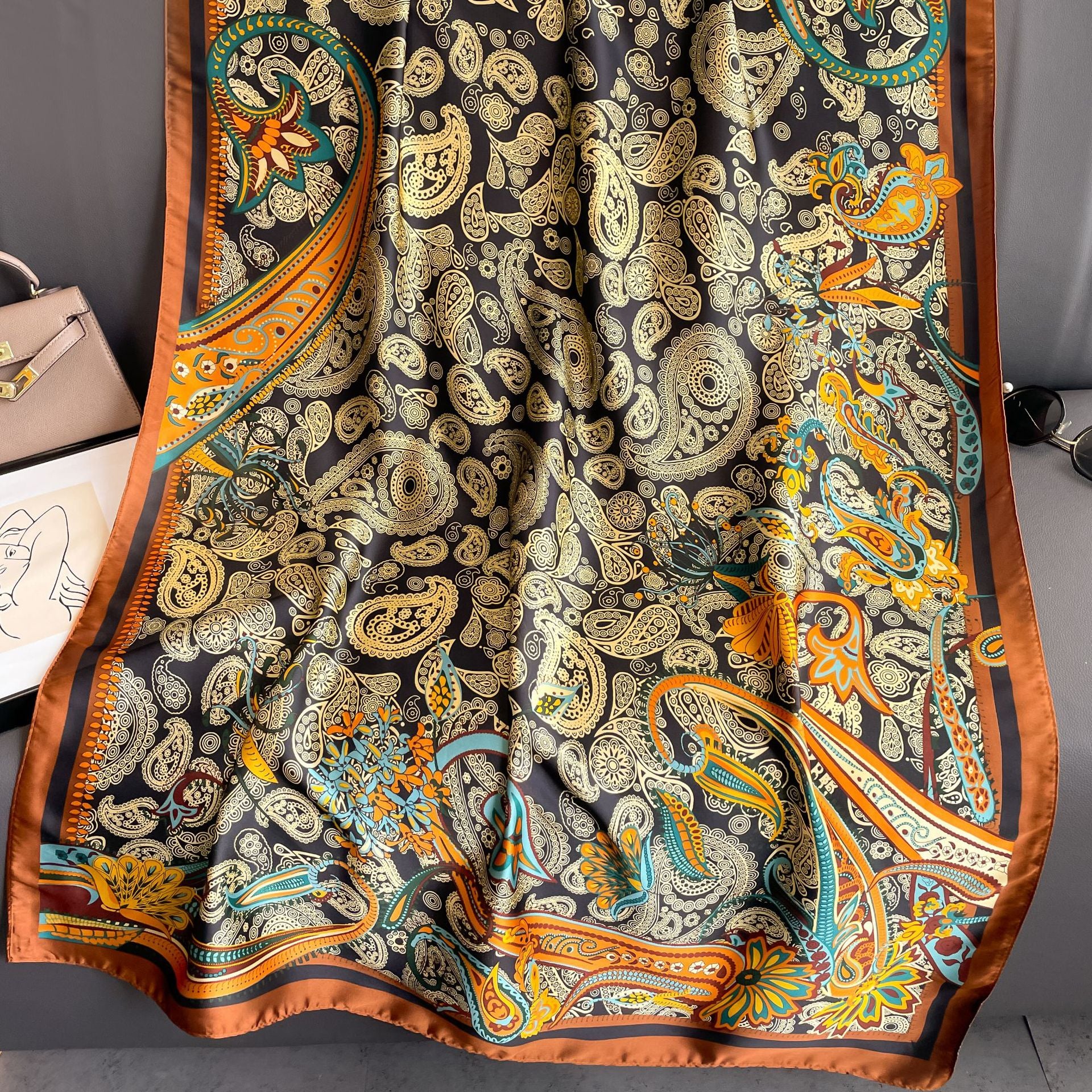 Traditional Floral Design High Quality Women's Satin Silk Scarf